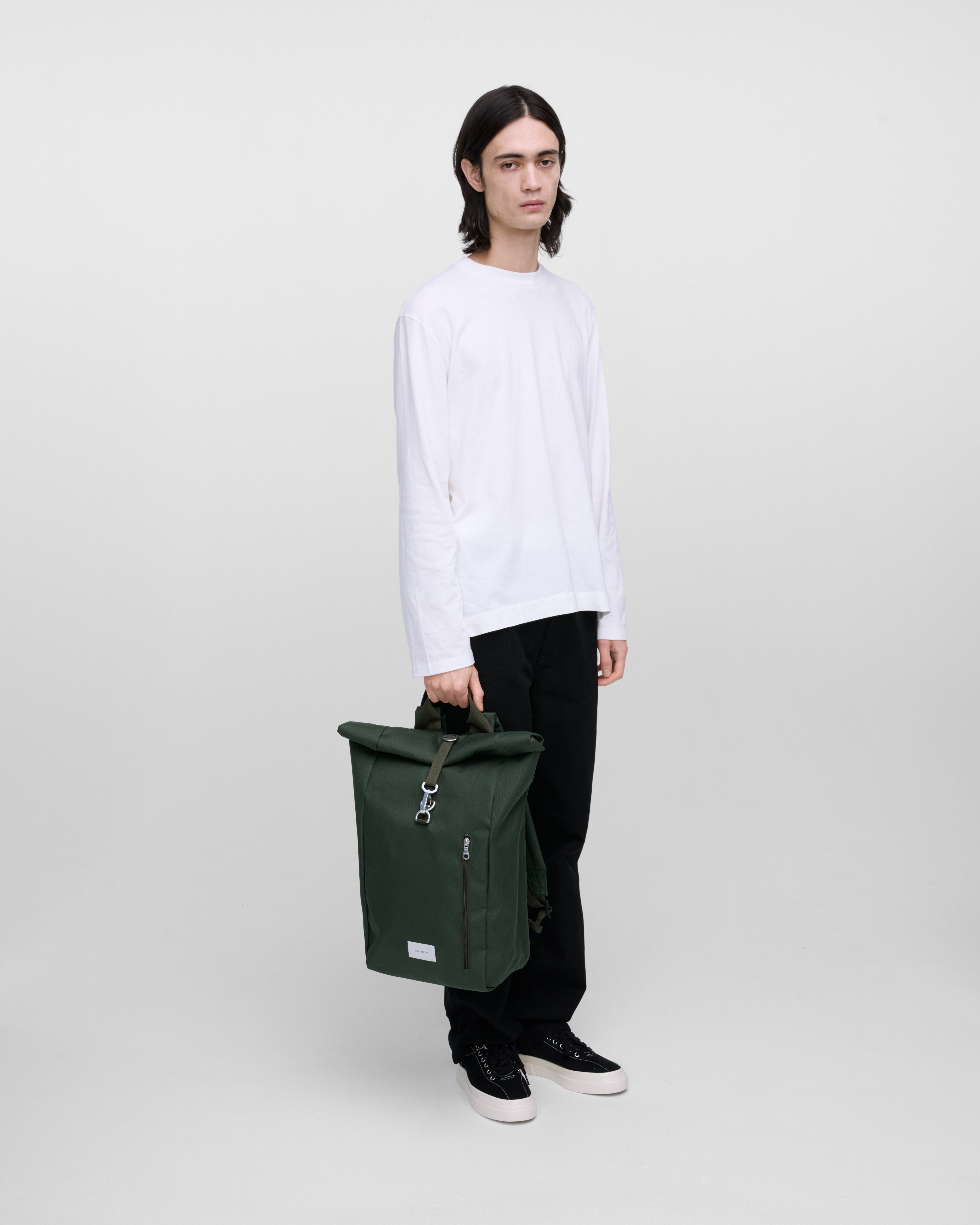 With main material and lining crafted from recycled polyester, the GROUND Rolltop Backpack L is highly durable. The foam padding padding is recycled polyeten while webbing is made from recycled nylon. This backpack is water-resistant and keeps your belongings dry in unpredictable weather. This backpack is a perfect companion for those seeking something that is sustainable and durable yet practical and timelessly designed.