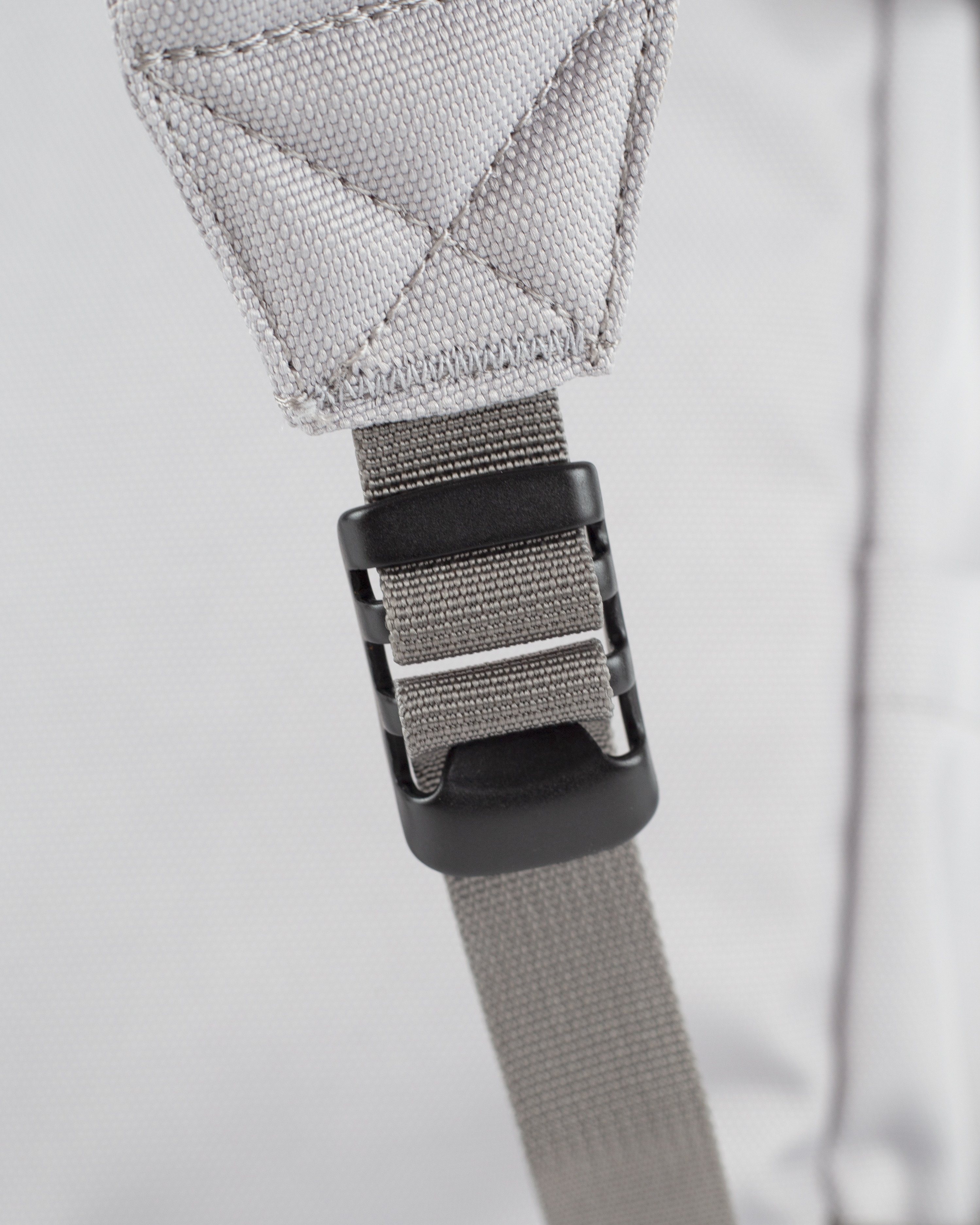 Rolltop closure with a zipper, secured by a metal buckle.